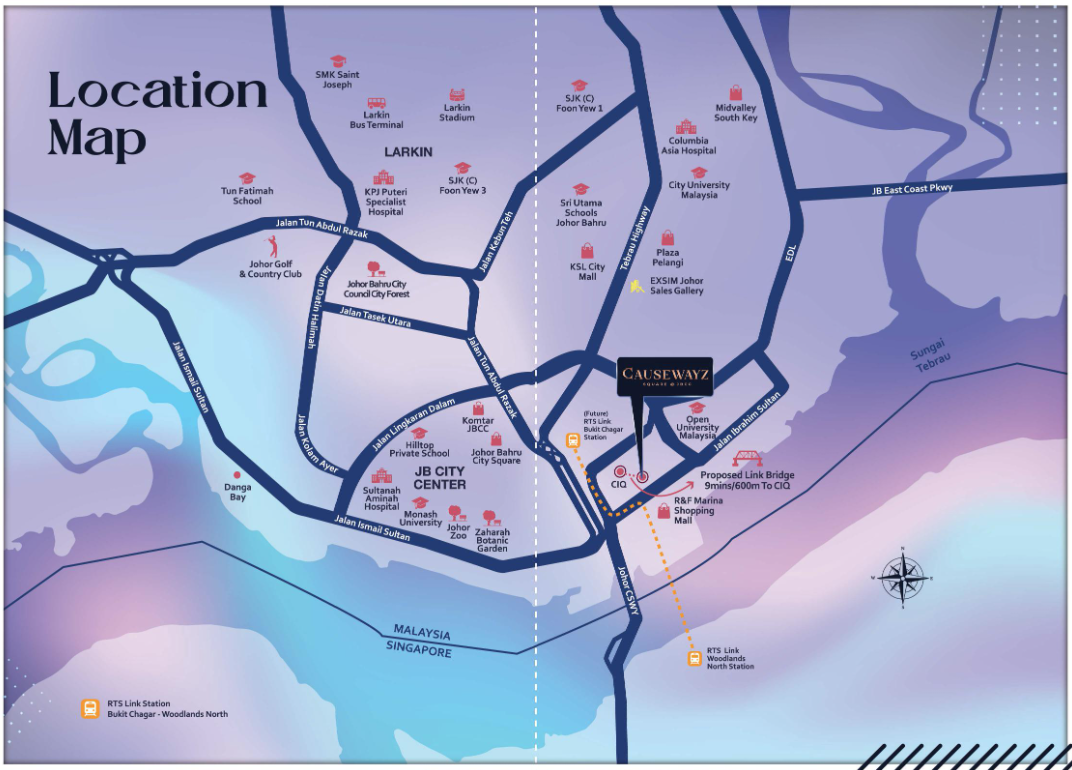 Exsim CIQ is a Iconic mixed-development strategically located next to the Johor–Singapore CIQ. Featuring towers with hotel-inspired hospitality management and spacious freehold layouts, it offers seamless connectivity via a covered link bridge to Singapore and RTS. Designed for modern living and high investment potential, Exsim CIQ sets a new benchmark for lifestyle and cross-border convenience
